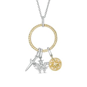 1/8 CT. T.W. Diamond Lasso Circle Pendant with Theme Charms in Sterling Silver and 10K Gold