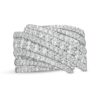 Wrap your finger in sumptuous sparkle with this outstanding diamond ring. Crafted in cool 10K white gold, this decadent design showcases a diamond-lined curved center row bordered in bypassing ribbons of graduated-size diamonds. Layered outer ribbons shimmer with diamonds to complete this stunning multi-row style. Luxurious with 2 cts. t.w. of diamonds and a brilliant buffed luster, this ring is anything but ordinary.