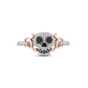 Black & White Diamond Sugar Skull Ring 1/5 ct tw Sterling Silver & 10K Rose Gold