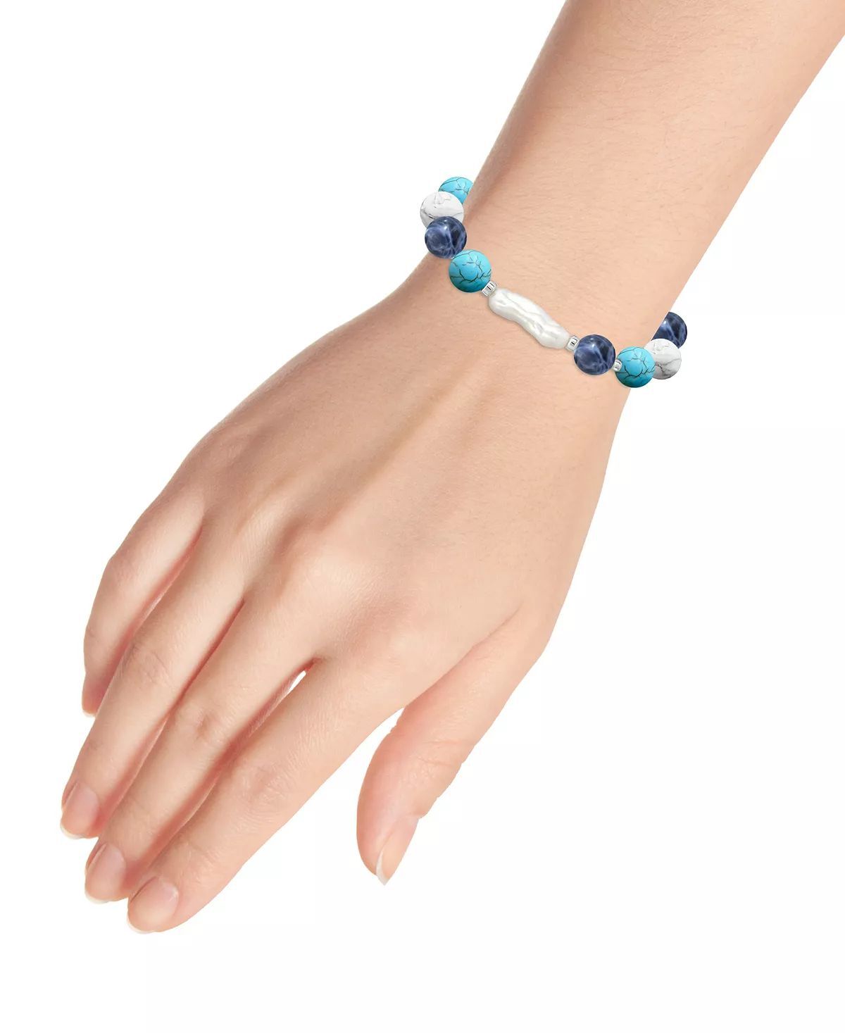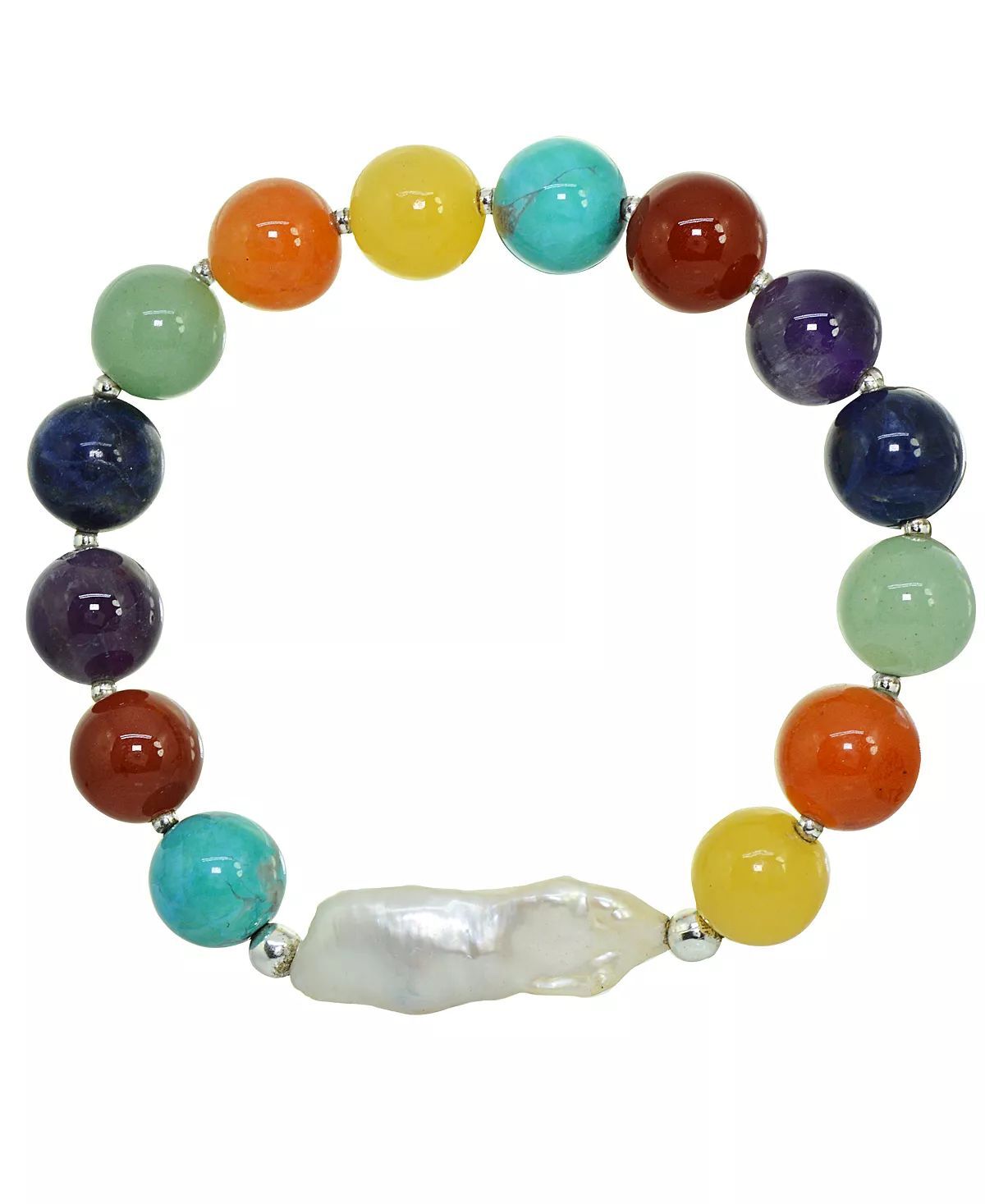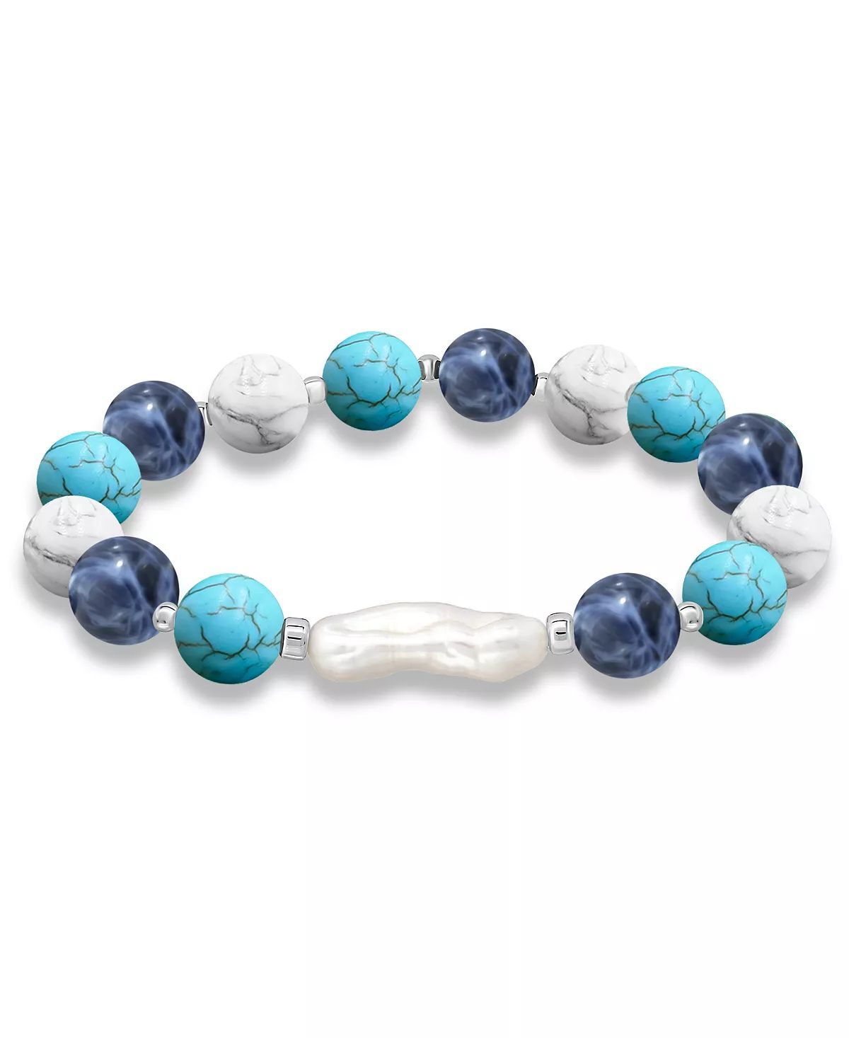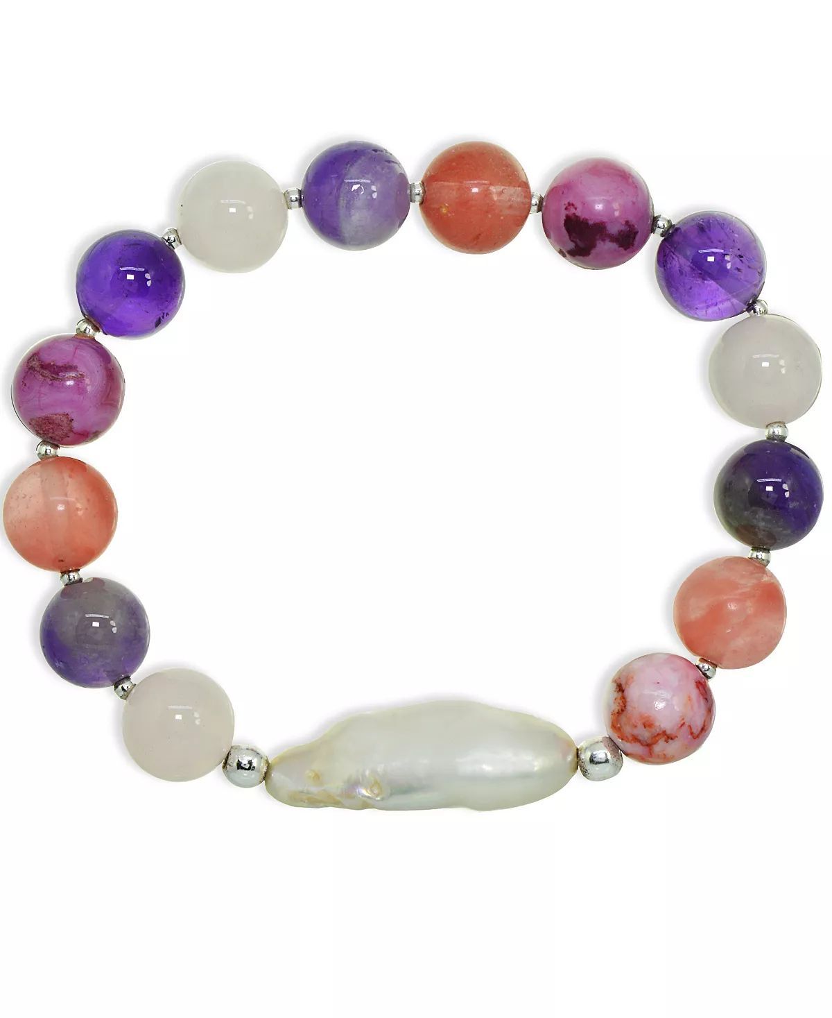 Add soft elegance to your look with this genuine stone biwa pearl stretch bracelet. This smooth bead bracelet gets a boost from a freshwater pearl center and silver plate accents.