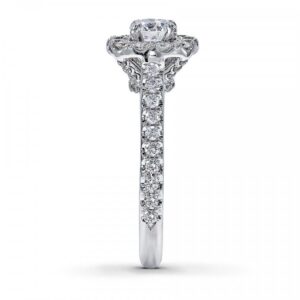 Round diamonds brilliantly frame a picture-perfect round diamond, with a line of round diamonds fanning out on either side. Fine jewelry rings are handcrafted and undergo a four-step polishing process to give each ring its beautiful shine and luster. This engagement ring has a total diamond weight of 1 1/8 carats, and is set in 14K white gold. Available online while supplies last. Previously Owned Treasures are not eligible for in-store pick-up. Previously Owned Treasures may only be shipped either to your home address or to an alternate address.