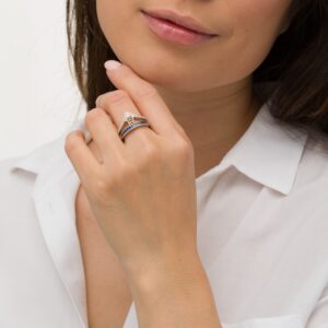 Blue Sapphire, Garnet and Diamond Tiara Ring in Sterling Silver and 10K Gold