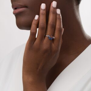 Garnet, Blue Sapphire and 1/15 CT. T.W. Diamond Symbol Ring in Sterling Silver